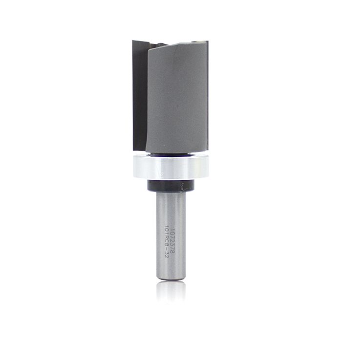 Carbide Tipped Template Bit 1 1/4″ Dia. x 1/2″ shank 1 3/4″ cut x 3 1/4″ length 2 flutes.Template bits also known as Pattern bits or Straight Bits with Centre Ball Bearing are used in woodworking to replicate letters, shapes or designs by means of copying an overlaid shape onto the desired material. The Ball Bearing guide will ride along the Template, and the carbide teeth will cut into the material at the exact diameter of the bearing, hereby copying the design flush with the bearings diameter.