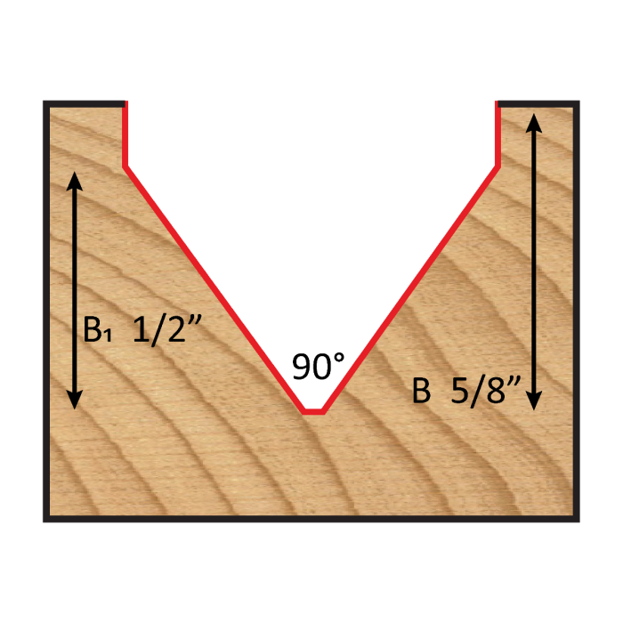 Carbide Tipped V-Groove Bit, 90° 5/8″ Dia. x 1/2″ shank