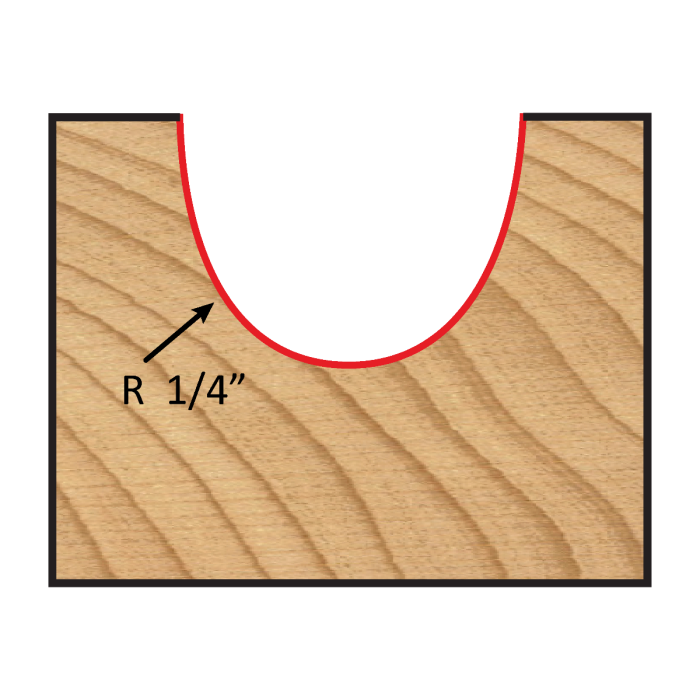 Carbide Tipped Core Box Bit 1/4″ Dia. x 1/4″ shank 1/8″ Radius x 1/2″ cut 1 3/4″ length, 2 flutes