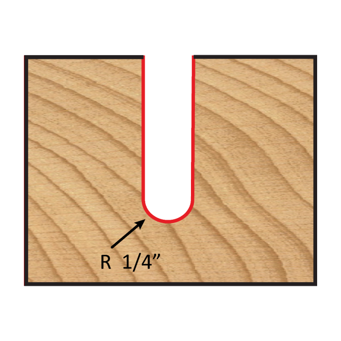 Carbide Tipped Core Box Bit 1″ Dia. x 1/4″ shank 1/2″ Radius x 5/8″ cut 1 3/4″ length, 2 flutes