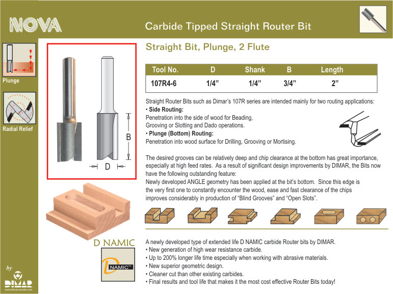 Straight Bit 1/4″ Diameter 3/4″ Cut