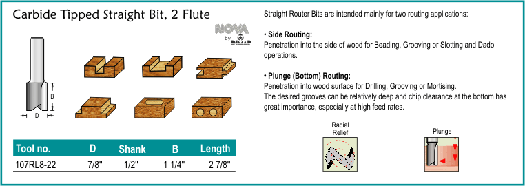 Straight Bit 3/8″ Diameter 3/4″ cut 1/2″ Shank