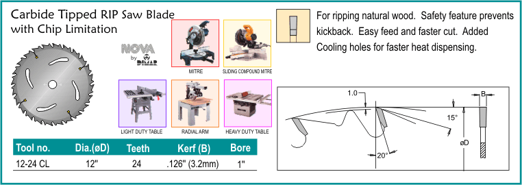 Carbide Tipped Ripping Blade with Chip Limitation 12″x 24 teeth x 1″ bore