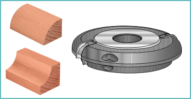 Corner Round / Cove CutterWear resistant aluminum body, complete with replaceable solid tungsten carbide knives. Suitable for rounding over and producing matching corner round/cove joints in softwood, hardwood and man-made boards on a spindle moulder.