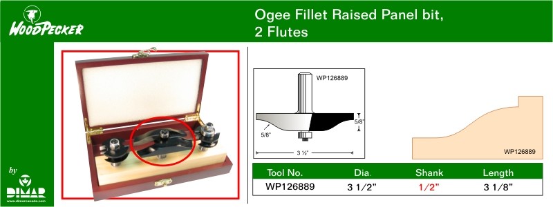 Woodpecker Raised Panel Bit 3 1/2″ Dia. 1/2″ Shank 3 1/8″ Length