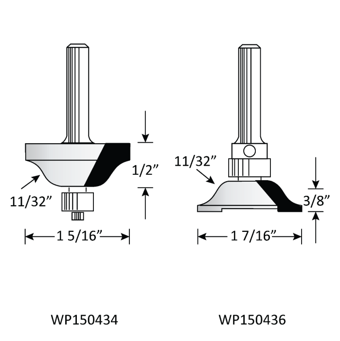 Cope Stick Bits, 3 Flutes Complete Set 1/4″ Shank WP150434 and WP150436