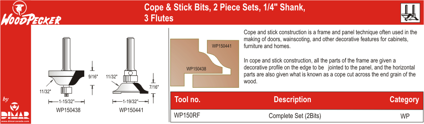 Cope Stick Bits, 3 Flutes Complete Set 1/4″ Shank WP150438 and WP150441