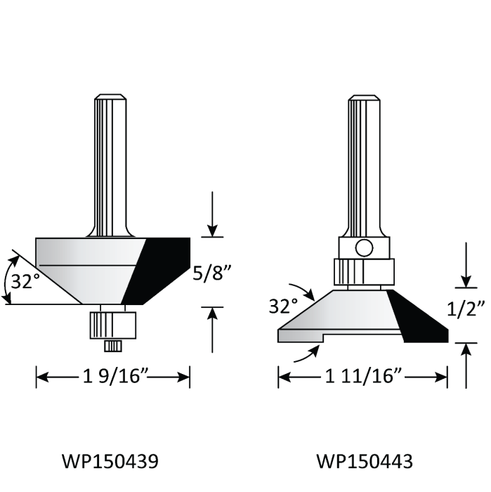 Cope Stick Bits, 3 Flutes Complete Set 1/4″ Shank WP150439 and WP150443